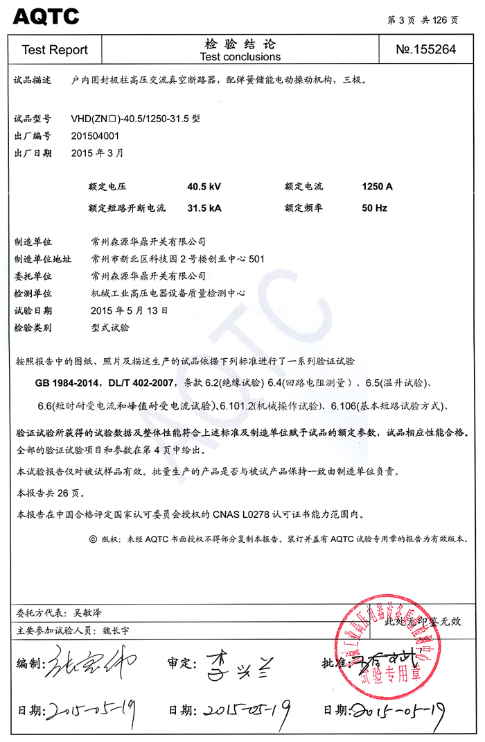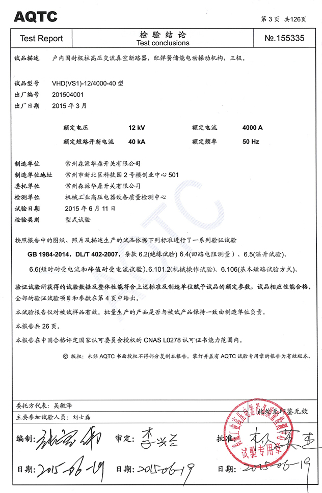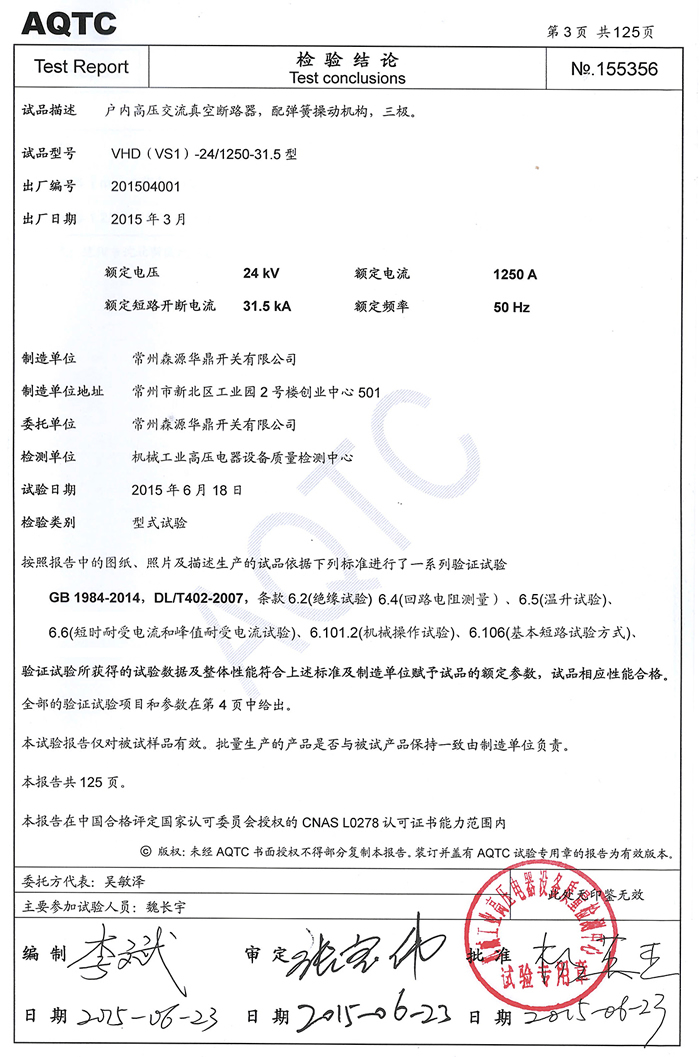 12KV(vs1,vhd)试验报告